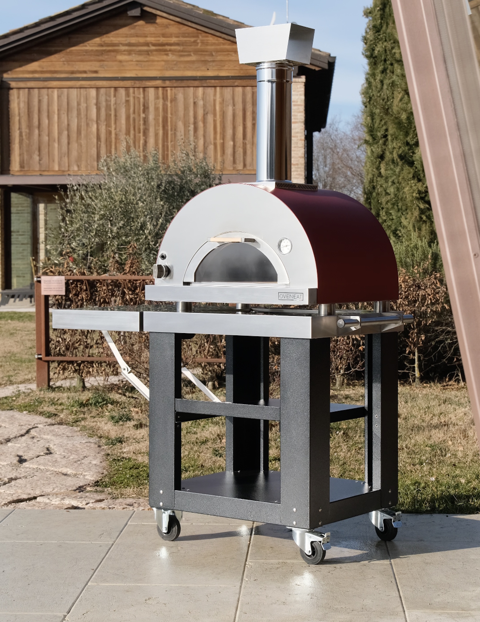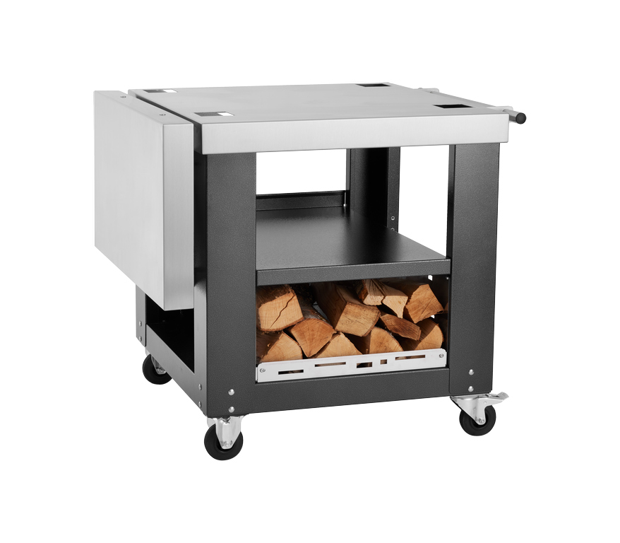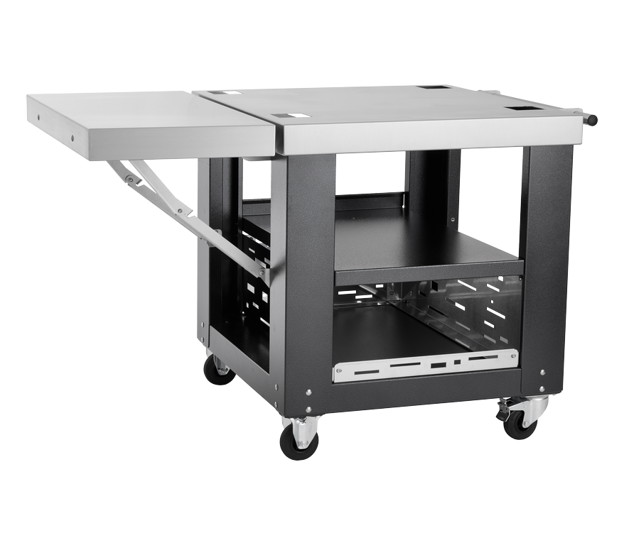 Fourni avec un chariot et une tablette latérale en acier inoxydable, idéale pour faciliter vos déplacements et le travail lors de la cuisson.