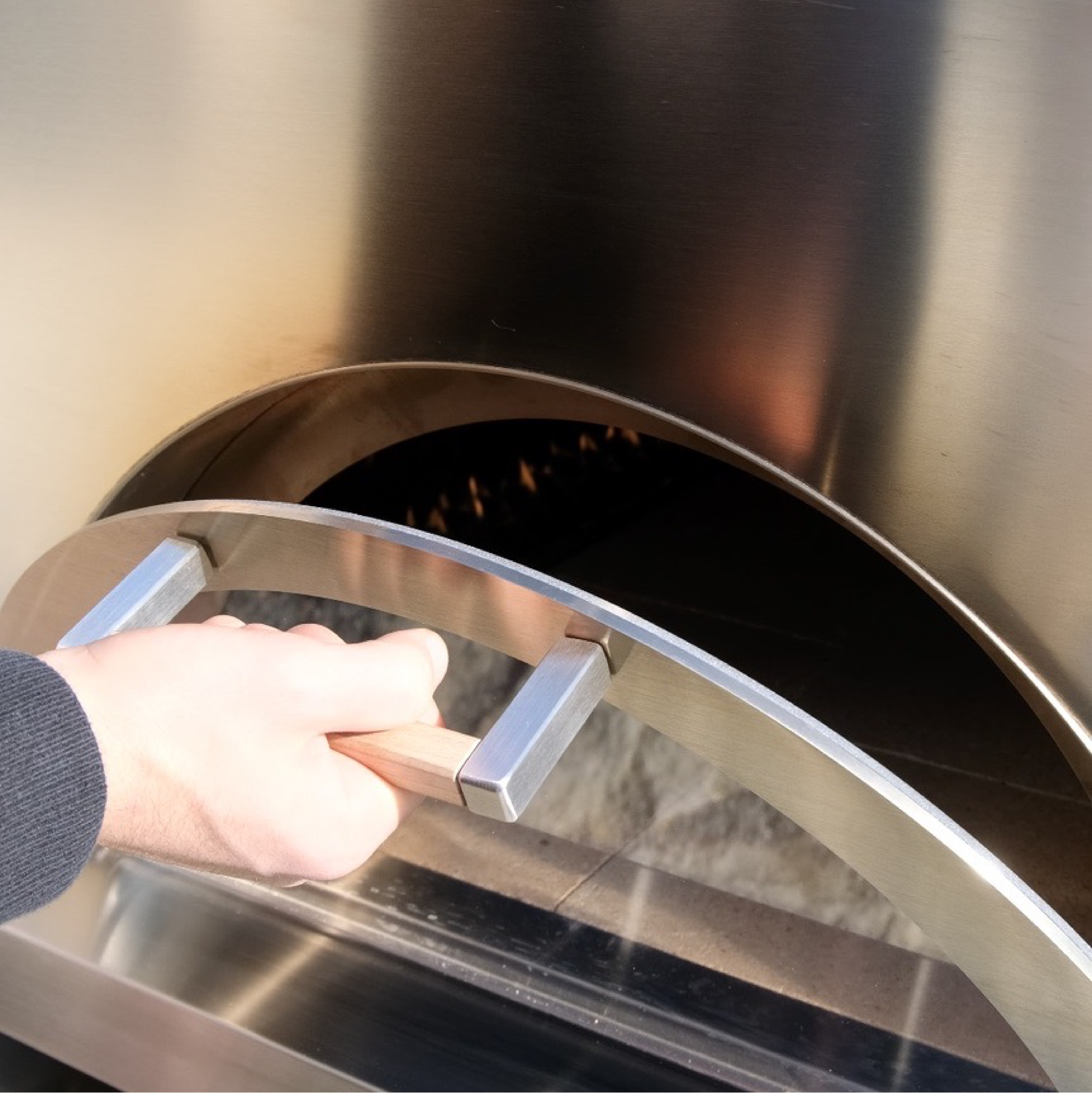 NOUVEAU SYSTEME D’OUVERTURE UNIQUE & BREVETE : la porte d’accès vitrée montée sur charnières vous permet d’observer la cuisson sans ouvrir sans cesse la trappe et grâce aux charnières, vous pouvez poser et glisser la pelle à pizza en position ouverte