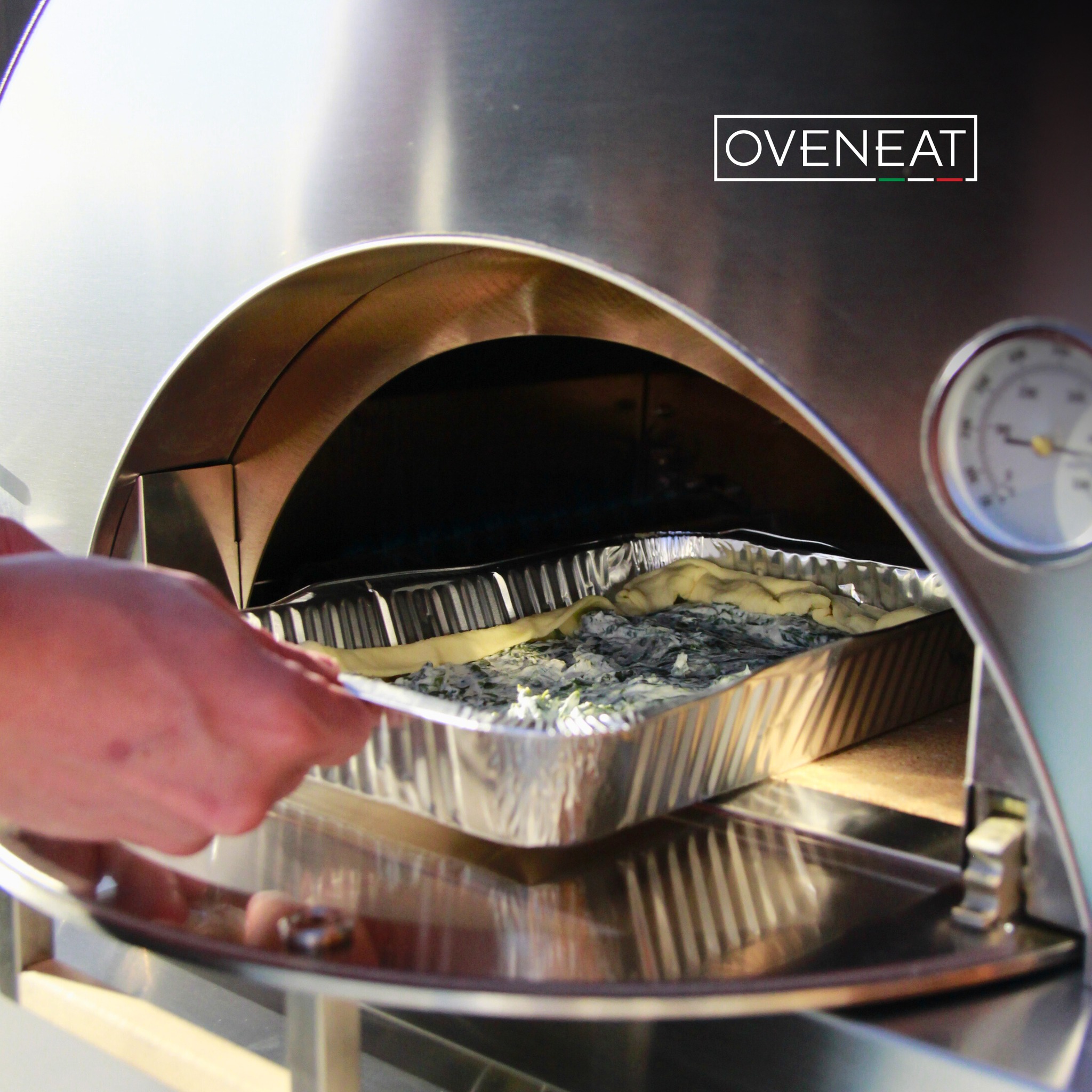 Chambre de cuisson en inox et en pierre réfractaire et silicate de calcium offrant une surface utile de 60 × 60 cm. Elle assure une excellente accumulation et restitution de la chaleur, garantissant une cuisson rapide, régulière et une pâte bien croustillante. La conception et la fabrication ne laissent apparaitre aucune visse, ce qui lui confère un design épuré.